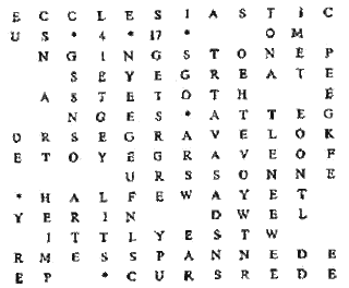 – Вижу слова STONE[3] и EYE[4] и, возможно, HASTE[5], и имяSEGRAVE[6], и слова FEW[7], ERIN[8], YES[9] и MESS[10], PANNED.[11]