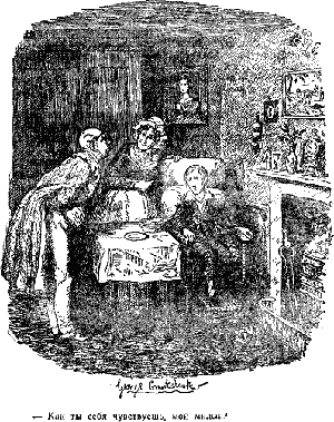 — Сэр, он только что получил тарелку прекрасного,крепкого бульону, — ответила миссис Бэдуин, выпрямившись и делаяэнергическое ударение на последнем слове, как бы давая этим понять, чтожиденький суп и умело приготовленный бульон не состоят ни в родстве, ни всвойстве.