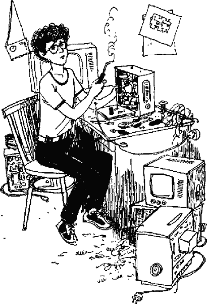 Кроме вышеперечисленных атрибутов ремесла в Гешиной комнате находились диван-кровать, письменный стол с дерматиновым верхом, залитый чернилами, машинным маслом, бензином, расплавленной канифолью, Гешиной кровью от многочисленных производственных травм, стояло два венских стула, тумбочка и на ней первый советский телевизор КВН-49. Телевизор был стар, но работал на редкость хорошо. А японская пластмассовая линза позволяла даже разглядеть выражение лица знаменитого хоккеиста Валерия Харламова или не менее знаменитого певца Иосифа Кобзона. Геша свой телевизор любил, холил его и нежил, менял в нём разные детали и не признавал никаких новомодных марок типа «Темп» или «Рубин», украшавшего столовую Кешиных родителей.