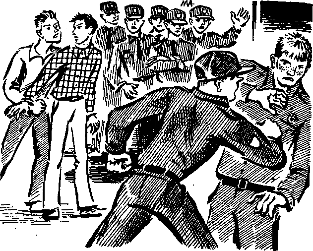 Отдав распоряжение, О'Коннор подошел к Редпату и начал что-то втолковывать ему. Фрэнку и Джо не было слышно, что он говорит, но они видели, как он сердито тычет рукой в сторону Ларри Кроуфорда, идущего в раздевалку. Лейтенант Редпат стоял, уперев руки в бока, и внимательно слушал, провожая Ларри хмурым взглядом.
