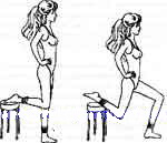 2. Встаньте прямо, спиной к стулу или табуретке. Левую ногусогните в колене так, чтобы положить подъем стопы на сиденье; руки уприте вбедра. Присядьте как можно глубже на правой ноге (обе ноги кажутся согнутымипримерно под углом 90 градусов). Зафиксируйте это положение, затем медленновернитесь в исходное положение и повторите 10-15 раз.
