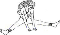 Не отрывая пяток от пола, потяните к себе носки и развернитеих в стороны. Обопритесь ладонями ровненько вытянутых рук о пол сзади себя.Выполните дыхательное упражнение: выдох, вдох через нос, мощный выдох черезрот, задержка дыхания, опустите голову, втяните в себя живот. Затем переместитеруки из-за спины вперед, наклонитесь и поставьте руки на пол прямо перед собой.Не отрывая пальцев от пола, передвигайте руки вперед, постепенно наклоняясь всениже. Задержитесь в самом дальнем положении, считая до 8. Освободите дыхание,примите начальную позу. Повторите 3 раза. Увеличивайте количество повторовпостепенно.