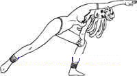 Постарайтесь не отрывать ногу от пола. Основной упорприходится на левое колено. Поднимите правую руку и вытяните ее над головой,тяните ее как можно дальше - будто указываете на сияющие вершины. Естественно,эта рука должна оставаться прямой и находиться около головы. Продержитесь вэтой позиции, считая до 8. Сделайте вдох. Выполняйте по 3 раза в каждуюсторону.