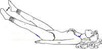 Лягте на спину, выпрямите ноги. Руки положите ладонями внизпод ягодицы. Держите голову на полу и не поднимайте поясницу. Выполните выдох,затем полный выдох, затем задержите дыхание и поднимите ноги над полом на 10-15см. Делайте широкие махи ногами крест-накрест, чтобы одна нога оказывалась наддругой (ножницы). Носки вытянуты. Упражнение выполняется на 8-10 счетов.Освободите дыхание, примите начальную позу. Повторите 3 раза. Следите запоясницей, так как вам, наверняка, захочется выгнуть ее: не выгибайте поясницу- она должна быть прижата к полу. Ступни высоко не поднимайте и тяните носки.