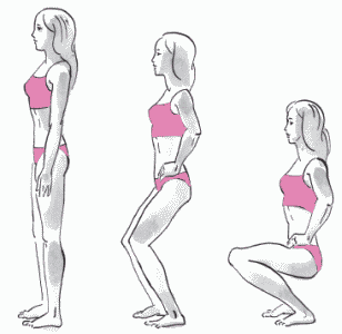 При выполнении этого упражнения не переусердствуйте с приседаниями, особенно вначале. Пусть их будет немного, главное для вас – проделать их правильно. Вскоре вы заметите, что ваши ягодицы стали упругими, подтянутыми, попутно подтянутся и проблемные зоны на бедрах. Кроме того, мышцы, управляющие ягодицами, тесно связаны с мышцами промежности, и, тренируя одни, мы оказываем тонизирующее действие и на другие.