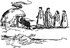 Верх плотины был достаточно широк, чтобы по нему идти, но удовольствие это было маленькое, ведь дорога вела по льду, и хотя замерзшая заводь с одной стороны была на одном уровне с плотиной, с другой был крутой обрыв. Так вот они и шли гуськом за мистером Бобром, пока не добрались до середины плотины, откуда можно было посмотреть далеко-далеко вверх и далеко-далеко вниз по реке. И когда они добрались до середины, они оказались у дверей бобровой хатки.