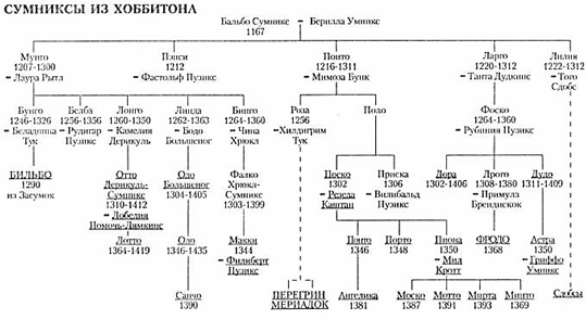 В Генеалогии Сумниксов большинство принадлежит гостямБильбо, присутствовавшим на Празднике (их имена подчёркнуты), или их прямымпредкам.
