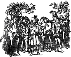На самом деле то была не толпа, а всего человек двадцать, в ярко-зеленых камзолах. Одни сидели в седле, другие стояли, держа коней под уздцы. В самом центре высокий оруженосец придерживал стремя для своего господина; а господин этот был на диво приветливым, круглолицым, ясноглазым королем.