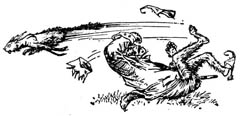Это было ужасно. Рыжий выскочил из Хлева с огромной скоростью, пятками задев Обезьяна. Если бы вы не знали, что это кошка, то могли бы подумать, что это рыжая вспышка молнии. Он проскочил открытое пространство и врезался в толпу. Никому не хотелось иметь дело с кошкой в таком состоянии. Звери бросились врассыпную. Кот вскочил на дерево, крутанулся и повис вниз головой. Хвост его топорщился и был так же толст, как все тело. Глаза походили на блюдца зеленого огня. Каждый волосок на спине стоял дыбом.