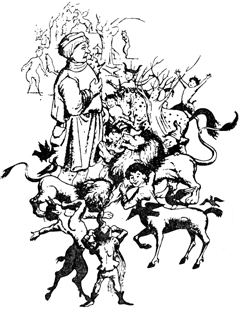 Да, на это стоило посмотреть. Одним прыжком он подскочил к каменному льву и дунул на него. Тут же обернулся кругом —точь-в-точь кот, охотящийся за своим хвостом, – и дунул на каменного гнома, который, как вы помните, стоял спиной ко льву в нескольких шагах от него. Затем кинулся к высокой каменной дриаде позади гнома. Свернул в сторону, чтобы дунуть на каменного кролика, прыгнул направо к двум кентаврам. И тут Люси воскликнула: