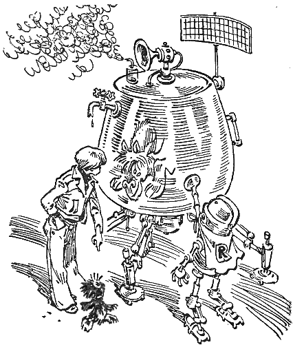 Коля с некоторой опаской поглядел в ту сторону, потому что ждал уже кого угодно. Но доктор Команьян с Кроманьяна оказался обычной садовой лейкой с ногами и руками.