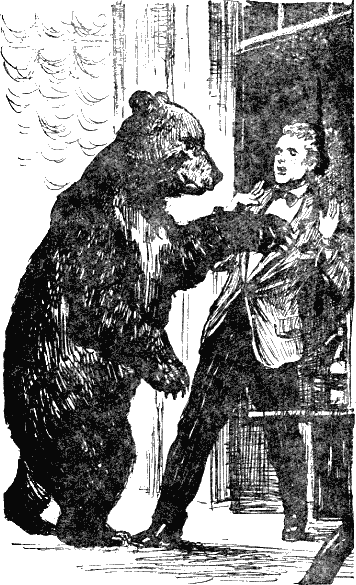 Рудольф побледнел и полуживой от страха дошел до двери, потом вдруг с истерическим криком бросился бежать от преследующего его медведя.
