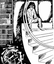 На ступеньке лестницы сидел Феликс. Джунгли на его голове ещё больше разрослись вширь и ввысь, а брюки и рубашка выглядели так, будто их долго, усердно жевали. Он смотрел прямо перед собой и грыз орешки, и кидал скорлупу куда попало. Рядом валялся карандаш-многоцветка, белую ступеньку у него под ногами покрывали формулы, да и две-три ступеньки ниже были тоже испещрены.