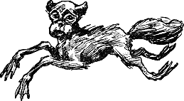 Козлик ещё больше поразил меня. Морда его была чрезвычайно вытянута, рога — длинные и кривые, как турецкие ятаганы, ноги тонкие, полутораметровой длины и оканчивались двумя хилыми придатками, расставленными под углом в тридцать градусов, как птичьи пальцы. Ростом этот «козлик» был с большого барана, но на нём совершенно не было шерсти.