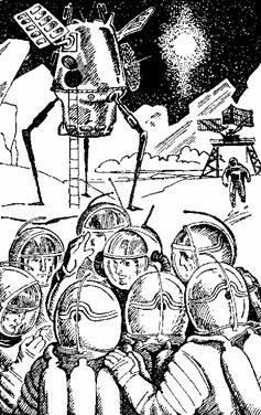 Десантная лодка Олега мягко села, выпустив длинные лапы упоров. Из лодки вылез человек в скафандре и скачками побежал к площадке. За плечами у него висел туго набитый рюкзак.