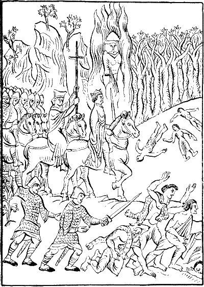 Новый папа был последовательным защитником христианства; видя, что король Французский Хлотарь — еретик, покровительствующий язычникам в их кознях, он трижды отлучил его от церкви, лишил короны и посадил вместо него на трон Пипина. Принц Пипин, опираясь на своего брата Карломана, подчинил себе все королевство франков, похватал еретиков и сжег их на костре, как они того заслуживали; он покровительствовал христианам и поддерживал католическую церковь, — вот почему все христиане явились ко двору Пипина и заключили с ним союз.