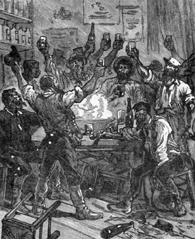 В одно мгновение каждый был на своем посту, готовый лить потоки спиртных напитков в разверзтые глотки гостей. Шум усиливался и перешел в невообразимый гул. Люди вбегали, охваченные волнением, которое объяснять не надо. Тотчас запылал пунш, захлопали пробки, вылетая из бутылок шампанского. Было похоже на салют, сопровождаемый фейерверком.