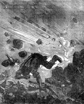 — Горю! Я горю! — в ужасе закричал он. — Огонь! Огонь! Бежать! Оставаться здесь — смерть! Я сгорю или задохнусь! Бежать! Но я не могу сделать ни шагу. Неужели у меня перебиты ноги? Да ведь в таком случае я пропал! Неужели начинается возмездие?.. На помощь! На помощь!..
