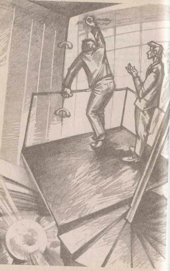 Ему указали на молодого человека, взгромоздившегося на самые высокие мостки; поднявшись по винтовой лестнице, Мишель через несколько секунд очутился на вершине Главной Книги.