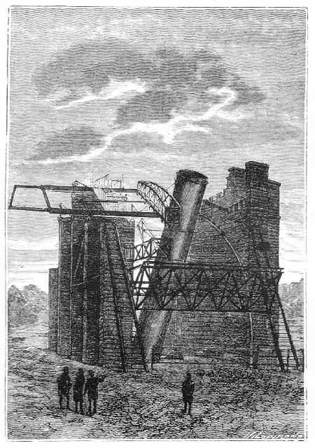 В самом деле, мы знаем, что телескоп, установленный Джоном Россом в Парсонстоуне, давая увеличение в 6500 раз, приближал Луну на расстояние шестнадцати лье от Земли; а благодаря мощному окуляру Лонгспика ночное светило, при увеличении в 48 тысяч раз, оказывалось приближенным почти на расстояние двух лье, что позволяло изучить во всех подробностях любой предмет диаметром не менее десяти метров.