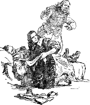 Бэйнс остался стоять на месте в полувызывающей позе, а егожена и дочь отпрянули в сторону. Блад, сидевший у изголовья больного, обернулсяи взглянул на ворвавшихся.