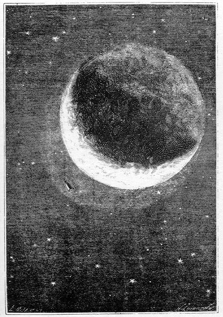 Путешественники инстинктивно подались назад. Их ужас был неописуем, но продолжался недолго. Астероид пронесся в нескольких сотнях метров от снаряда и исчез так же внезапно, как и появился. Это объяснялось не столько быстротой его полета, сколько тем, что его поверхность, обращенная к Луне, быстро потухла в непроглядном мраке.