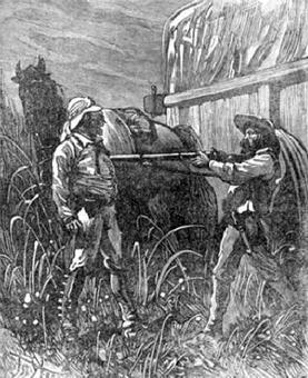 Застыв от ужаса, она ждала выстрела и свиста пули, но, к ее изумлению, Клаас воскликнул что-то самым веселым голосом. Дело в том, что он узнал огромного коня незнакомца.