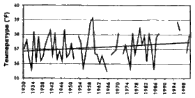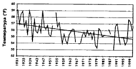 Как видите, — сказала Дженифер. — В Нью-Йорк-Сити стало теплее, зато в других частях штата, от Освего до Олбани, с 1930 года отмечается похолодание.